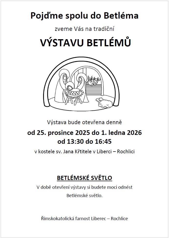 Již po osmé otevřeme během vánočních svátků kostel sv. Jana Křtitele v Liberci-Rochlici pro veřejnost, aby si zde lidé mohli prohlédnout výstavu betlémů.
